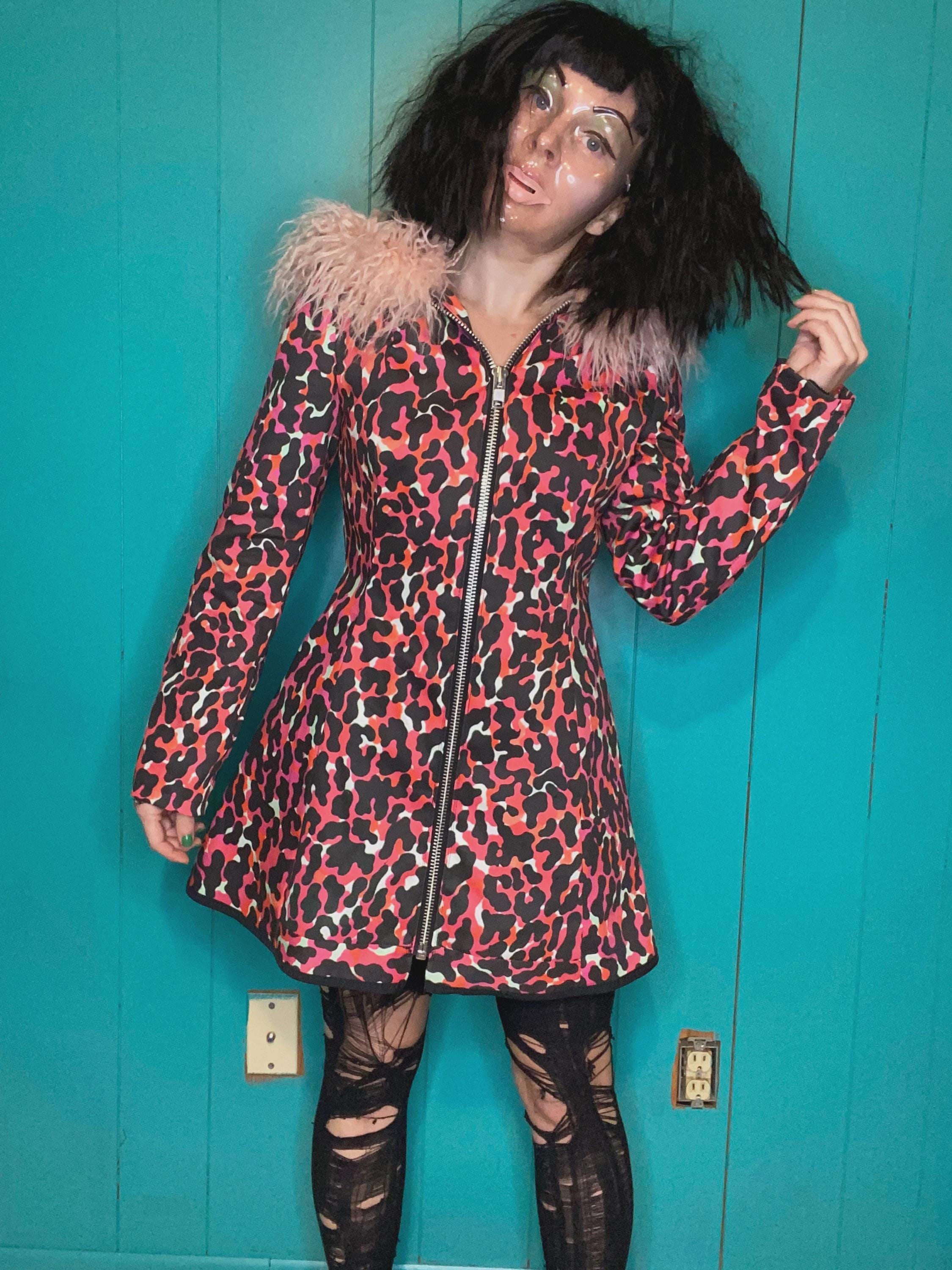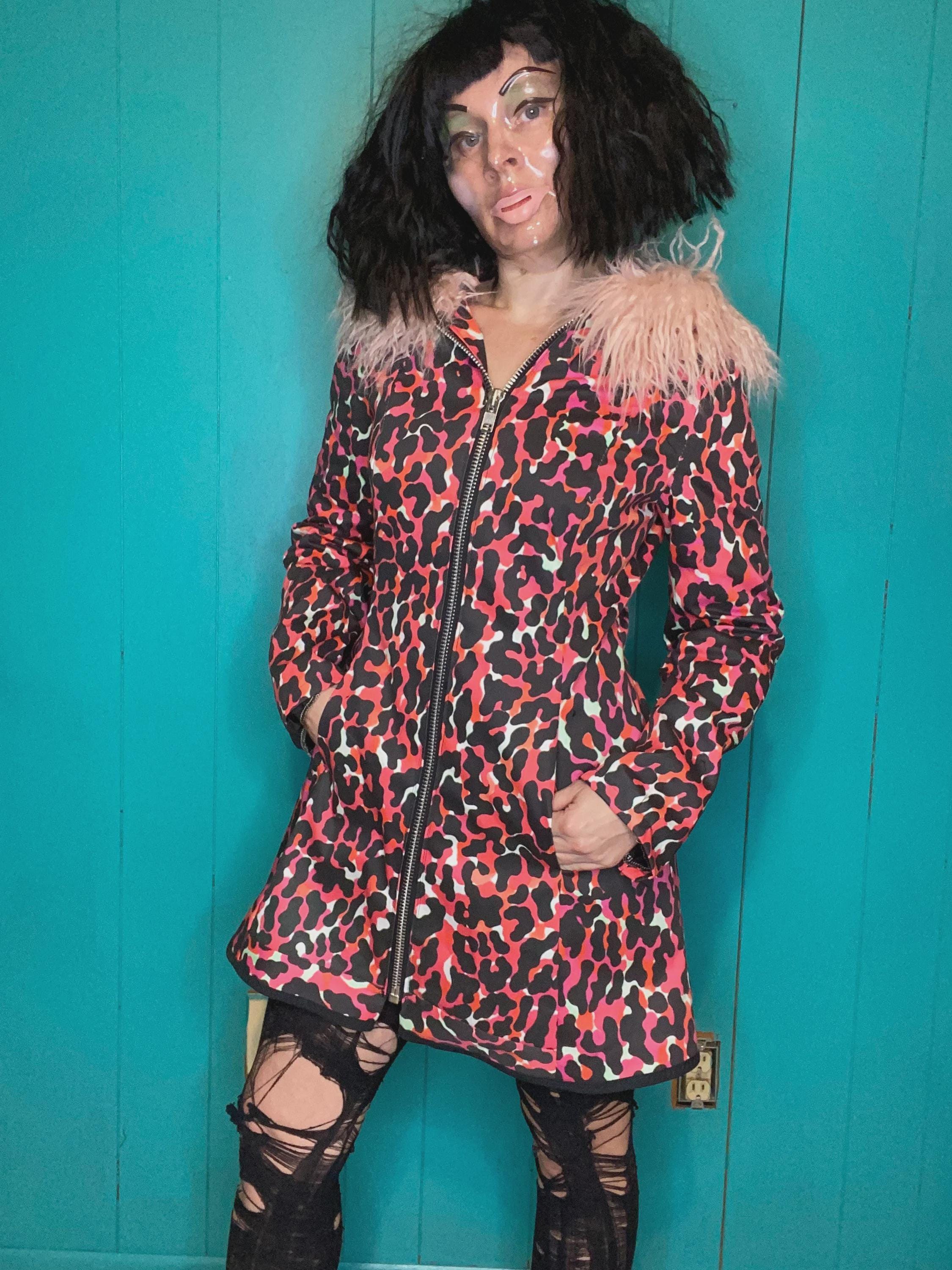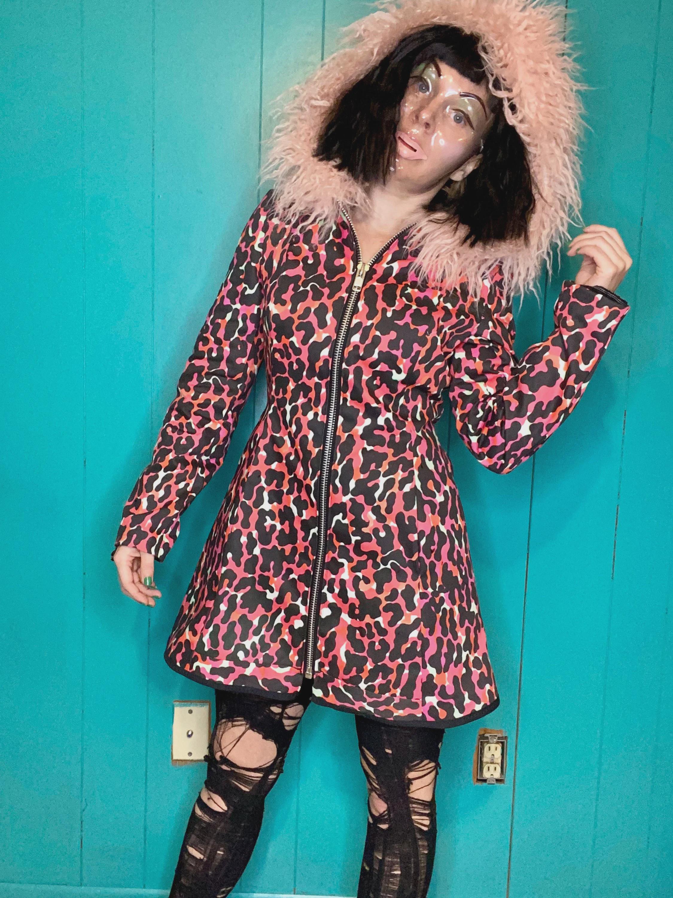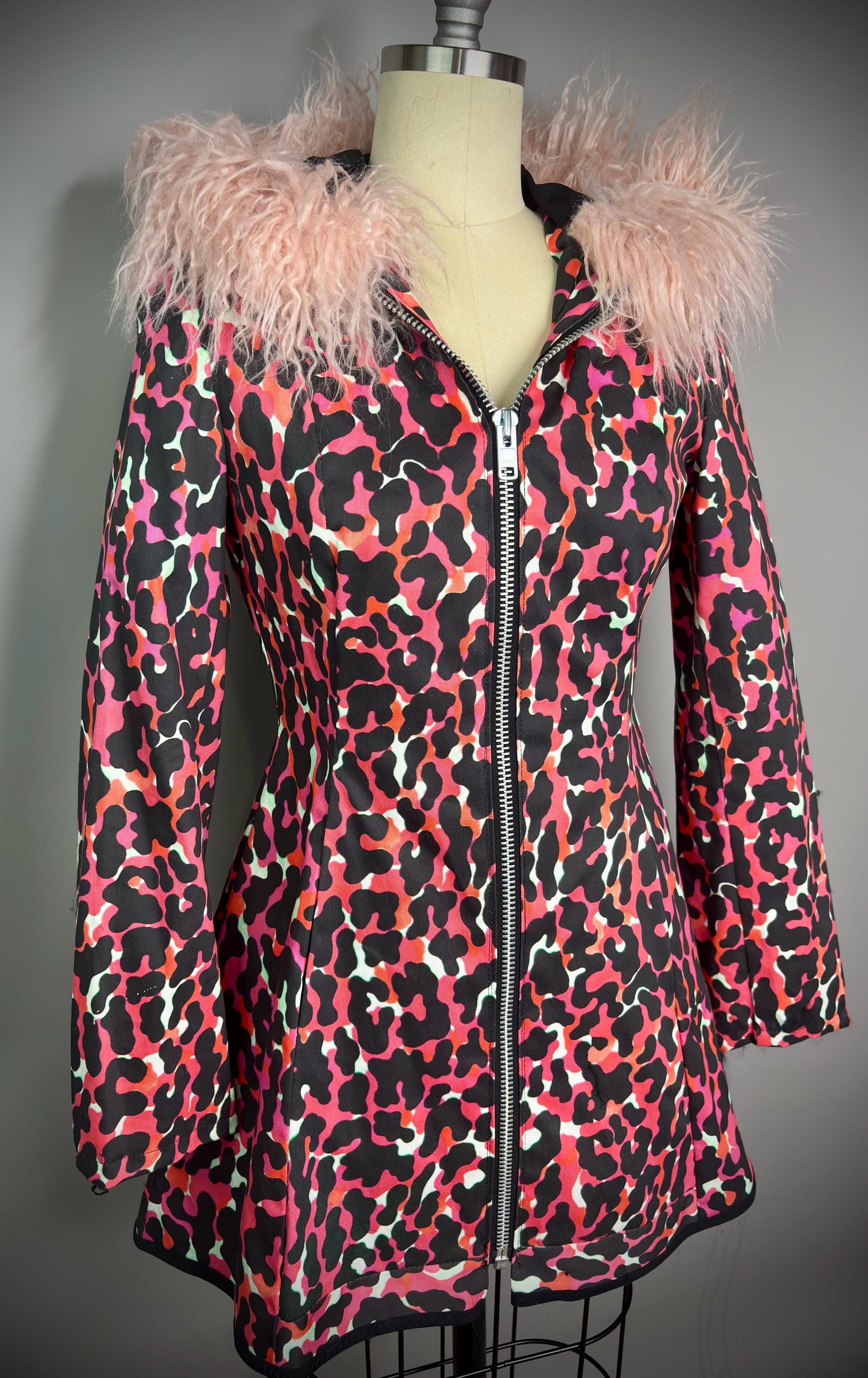 RagLuxe hot pink twill coat with Mongolian fur trim, center front industrial zipper and side front pockets. Jacket is fully lined. One of a kind.Size S/MBust 33-37”True waist 25-30”Hips up to 42”